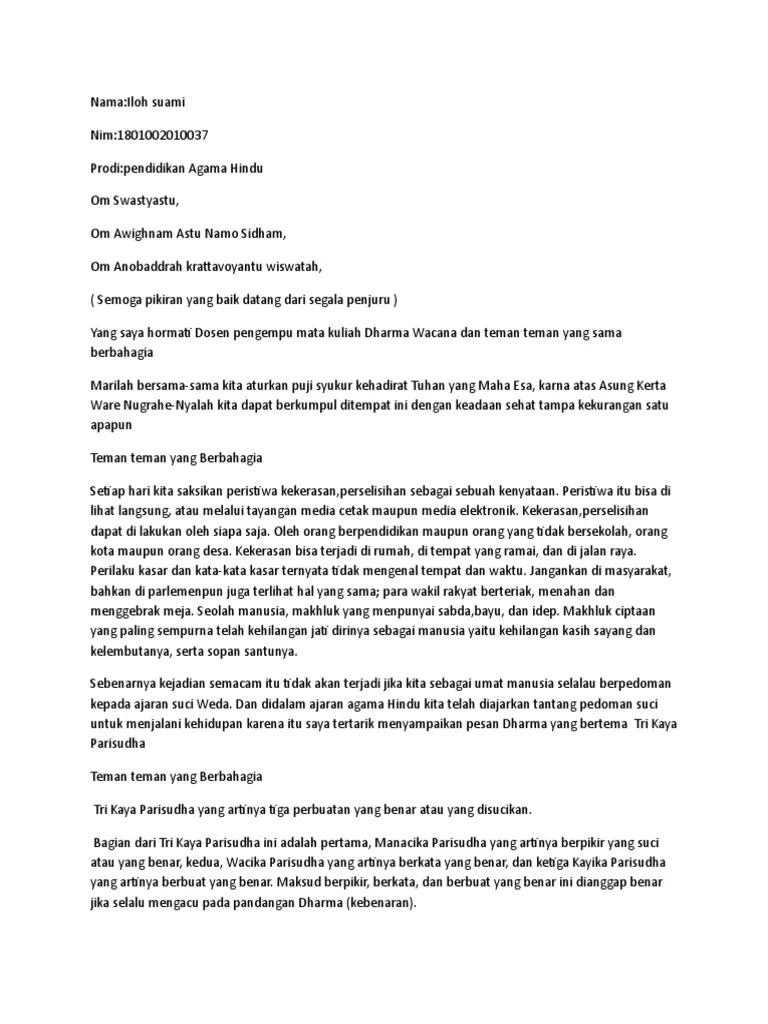Pengertian kitab suci veda dan buku biasa b. Bab 3 susila tri kaya parisudha; 1.4 melatih diri melaksanakan tri kaya parisudha dalam kehidupan. tri kaya parisudha terdiri atas tiga bagian berpikir yang Termasuk bagaimana kegalauan saya ketika menentukan topik yang akan diangkat ke tesis.